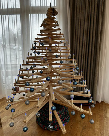 Das wir mit unseren Gästen zusammen einen Lattenbaum für die Weihnachtszeit gebaut haben, der 180 cm hoch ist und einen Durchmesser von 160cm